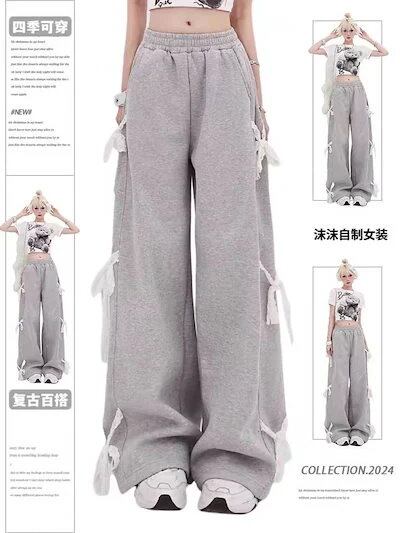 Y2K ワイドパンツ 日系 キャンパス風 蝶結び ワイドパンツ ゆるい 韓国 ハーレムパンツ★3