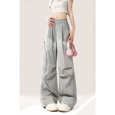 レトロ Y2K ワイドパンツ グレー 蝶結び ゆるい ワイドパンツ ストレート★4