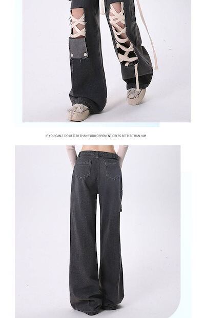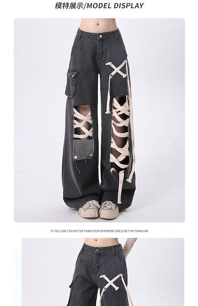 ダメージデニムパンツ Y2K 2024新作 大きい ワイドパンツ おしゃれ 流行り★9