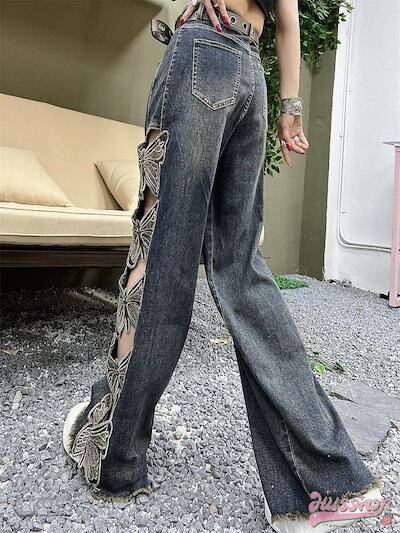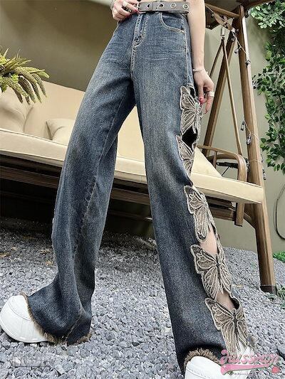 2024春夏 ハイウエスト 韓国 レディース デニムパンツ ボトムス ワイドレッグ ゆるダボ ジーンズ ゆったり カジュアル ストリート 切りっぱなしカットオフ加工肌見せ ファッション系★1