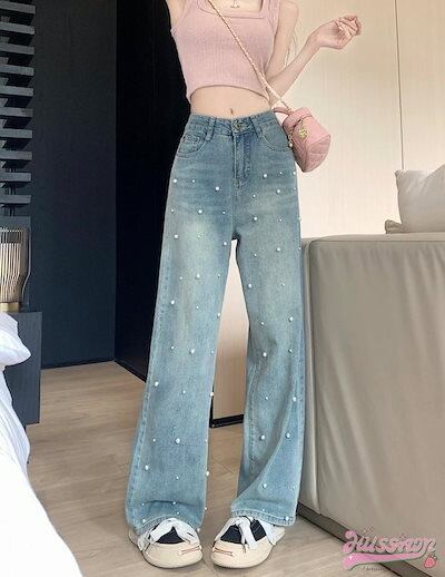 2024 春夏 パンツ デニム ジーンズ スキニー レッグ ハイウエスト 脚長効果 美脚効果 細見え 春 水色 ライトブルー ストリート系 カジュアル ズボンファッション デザインお出かけ