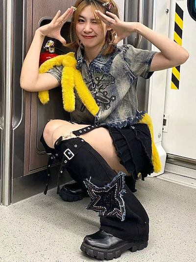 ワイドパンツ モップパンツ ブラック あしの長いカバー ダメージデニムパンツ Y2K