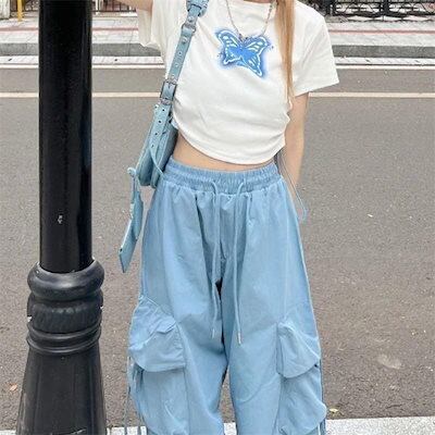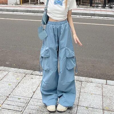 カーゴパンツ 夏 新作 ワイドパンツ Y2K カラー マルチポケット 流行り ストレート モップパンツ