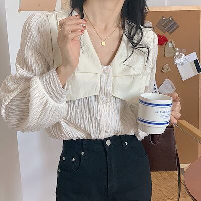 シアーシャツ 高級感 長袖ブラウス レディース 韓国ファッション 百掛け 通勤 トップス Vネック着痩せ シャツ 薄 長袖 Tシャツ 気質 インナー