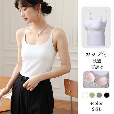 カップ付きインナー ノースリーブ カップ付きインナー 夏 キャミソール 涼しくて快適カップ付ブラトップ 下着 レディース タンクトップ 大きいサイズインナー