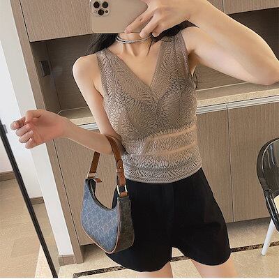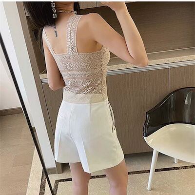 カップ付きインナー ノースリーブ カップ付きインナー ブラジャー一体型カバーキャミソール セクシー レース キャミソールインナー 韓国ファッション タンクトップ