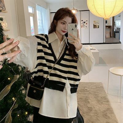 シフォンブラウス シアーシャツ 秋 Tシャツ 韓国ファッション 夏 シャツ レディースフェイクレイヤード ブラウストップス ゆったり百掛け
