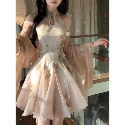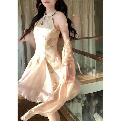 人气新作パーティードレス ドレス ワンピース 韓国ファッション レスロングワンピース 着痩プリントワンピース レディース 春 新作 人気 スカート 夏メガ割