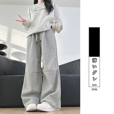 激?れ人気商品ワイドパンツ 韓国ファッション秋新作 ゆったりスウェット百掛けスラックスパンツ 着痩せ ハイウエストロングパンツ ワイドパンツテーパードパンツ スキニーパンツメガ割