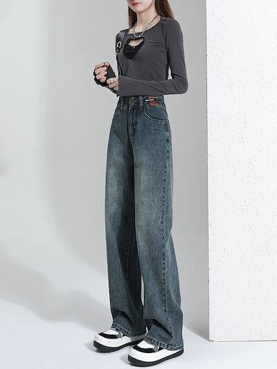 激?れ人気商品 脚長効果!デニムパンツ かっこいい!スラックスパンツ ストレートジーンズ 美脚 着痩せ 春夏 ゆったり ワイドパンツ モップパンツ