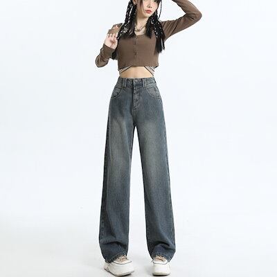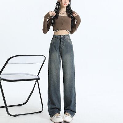 激?れ人気商品 脚長効果!デニムパンツ かっこいい!スラックスパンツ ストレートジーンズジーンズ百掛け 春夏アメリカ ゆったり ワイドパンツ