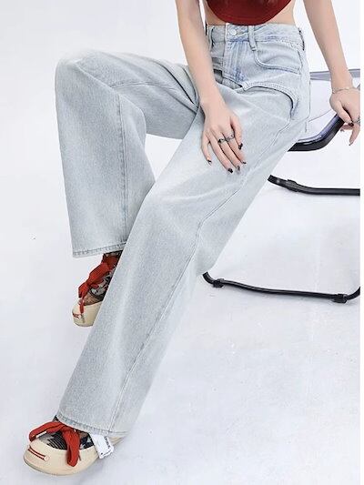激?れ人気商品 脚長効果!デニムパンツ かっこいい!スラックスパンツ ストレートジーンズ ジーンズ百掛け 春夏 アメリカンギャルライトブルー ゆったり ワイドパンツ