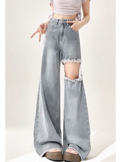 激?れ人気商品 脚長効果!デニムパンツ かっこいい!スラックスパンツ ストレートジーンズ 春夏 レトロ ゆったり ワイドパンツ