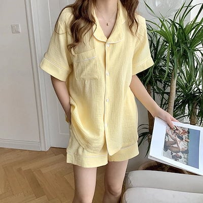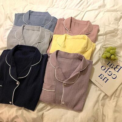 人气新作カップルパジャマ ペアパジャマ 春夏 半袖ルームウェア ペアルック 前開き 可愛い 無地 綿 上下セットレディース/メンズ涼しく楽ちんセット部屋着 コートン オシャレ ギフト