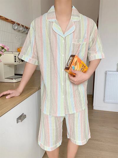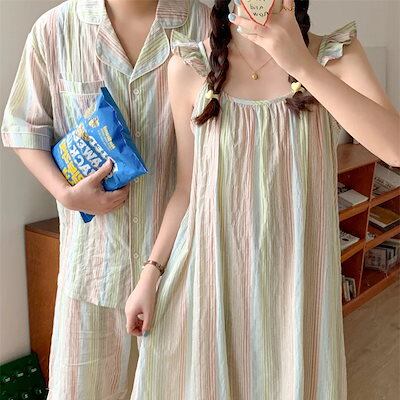 人气新作カップルパジャマ ペアパジャマ 春夏韓国版 半袖ルームウェア ペアルック 前開き 可愛い 無地 綿 上下セットレディース/メンズ 涼しく楽ちんセット 部屋着 コートン オシャレ ギフト