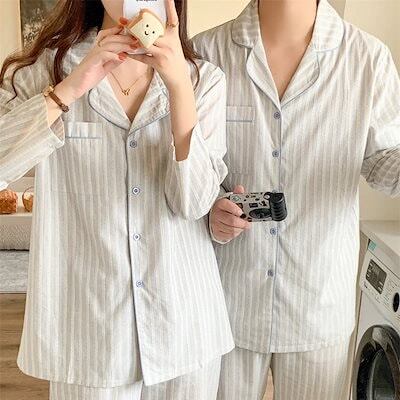 人气新作カップルパジャマ ペアパジャマ 春夏 韓国版 半袖ルームウェア ペアルック 前開き 可愛い 無地 綿 上下セットレディース/メンズ部屋着 コートン オシャレ ギフト
