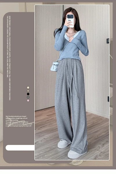 激?れ人気商品ワイドパンツ 韓国ファッション 秋新作 ゆったりスウェット百掛けスラックスパンツ 着痩せ ハイウエストロングパンツ ワイドパンツテーパードパンツ スキニーパンツメガ割