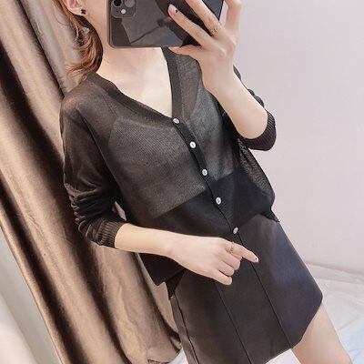 ベーシックニット カーディガン 韓国ファッション uvカット ニット アイスシルク シャツ カーディガン レディース フィット ゆったり 着痩せ カーディガン アウター コート