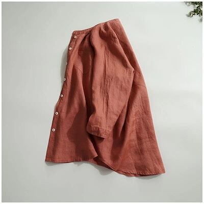 2024 春夏シャツ 女性ドリネン麻上着綿麻七分袖シャツ ブラウス 韓国ファッション