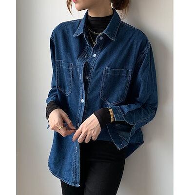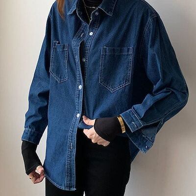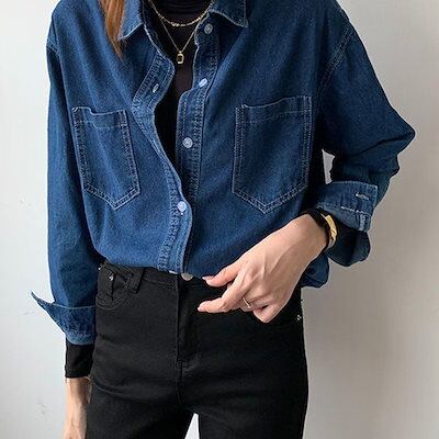 デニムジャケット 春シャツ 韓国ファッション デニムブラウス百掛け 通勤 薄 長袖トップス 高級感 デニムブラウス トップス 長袖シアーシャツ Tシャツ 気質tシャツ レディース