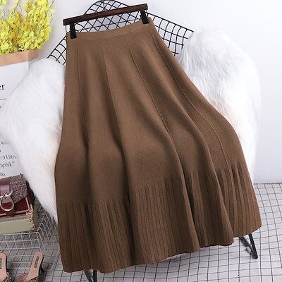 【2枚購入で 2oo円OFF!】可愛い スカート ハイウエスト タイトスカート 秋冬ハイウエストカットスカート女子丈の毛糸A字大振り プリーツスカート ロングスカート 流行り 百掛け スカート