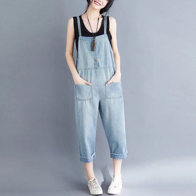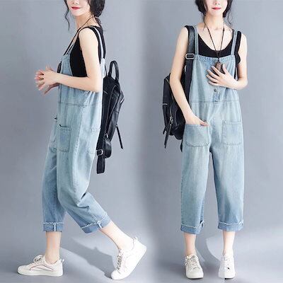 2022韓国オーバーオール デニムヴィンテージストサロペットリネンパンツデニムパンツ
