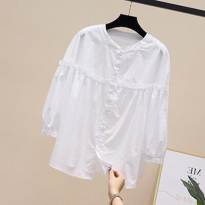 2024 春夏シャツ シアーシャツ ブラウス ストライプシャツ 上着 フリル シャツ レース レディース可愛いバックプリーツ長袖シアーシャツ ブラウス 韓国ファッション