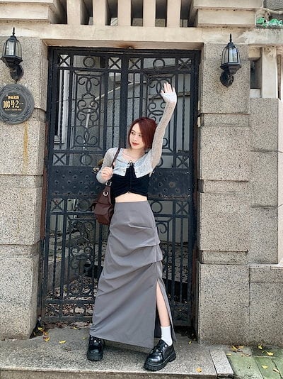 2024 春秋 スカート ロング丈 ポケット ハイウエスト マキシロング スカート ロング スカート 美脚効果 脚長効果 細見え 夏 おしゃれ かわいい サイド韓国系ファッション レディース お出かけ