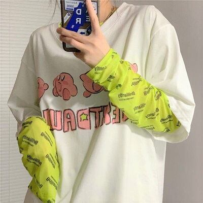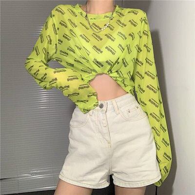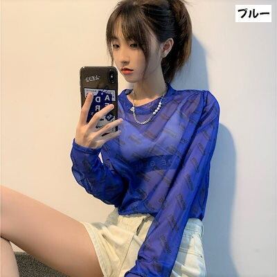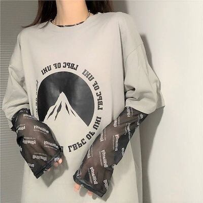 透けアイテム を楽しむ 透明感UP tシャツ ファッション 韓国 トップス デザイン カットソー イラストエンジェル 長袖 ロングプリント カジュアル 夏春 秋