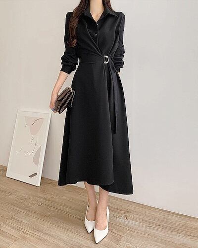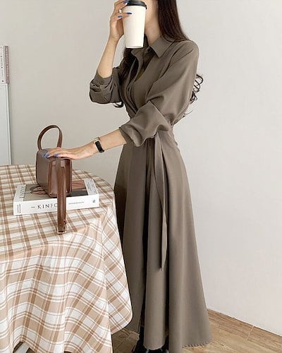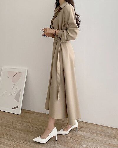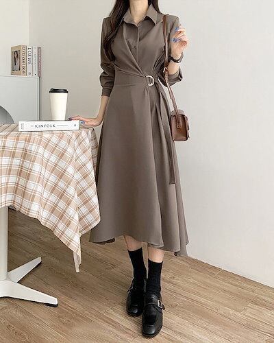 2024 秋冬 ウエストマークシャツロングワンピース