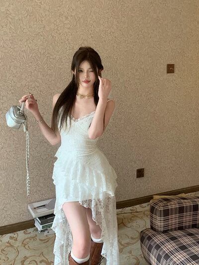 2024夏 韓国 ワンピース ロング丈 ゆったり キャミソール Vネック ハイウエスト フィッシュテールかわいい カジュアル おしゃれ 夏 ファッション フィッシュテールフレンチお出かけ