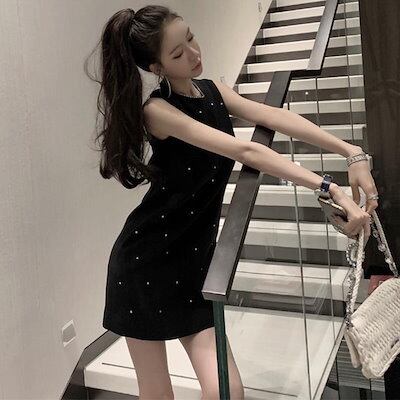 2024 春夏ノースリーブビジュー付きAラインワンピース