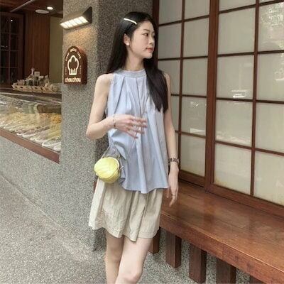 2024春夏ノースリーブ ベストシャツ トップス 韓国ファッション
