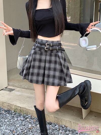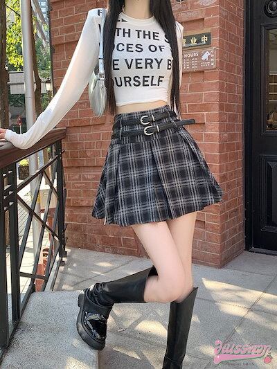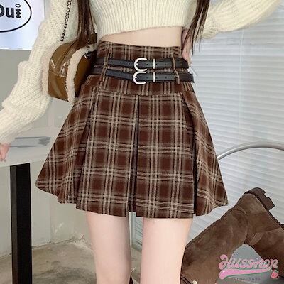スカート ミニ丈 プリーツ 台形 Aライン チェック ハイウエスト 脚長効果 美脚効果 細見え 秋 かわいい おしゃれ カジュアル 韓国ファッション レディース お出かけ