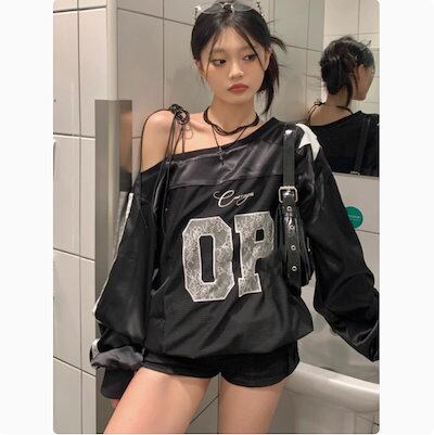 2024 秋冬 トップス 長袖 かわいいラウンドネック Tシャツ レディースロンt 韓国風ロゴ衣装ルーズゆったりカジュアルおしゃれサイズスリーブシルエットファッション系サイドシャツフットスウエット春