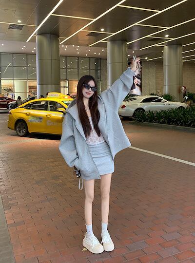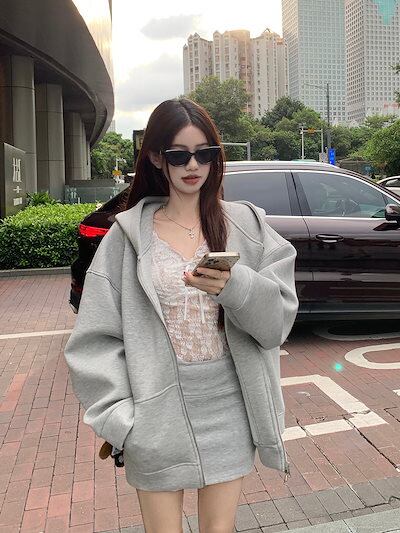 2024 秋冬トップス パーカー フード付き 羽織りミニスカート丈 きれいめ 大人っぽ 上品 サイズゆったりカジュアルトラックストリートシルエットスリーブかわいいファッション系春3点セットアップ