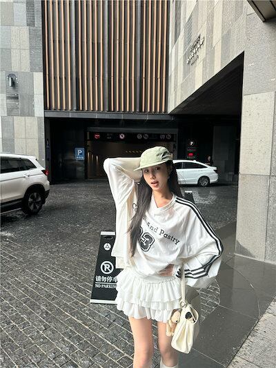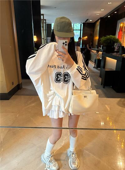 2024秋冬トップス レタープリント ナンバリング 長袖 オーバーサイズ サイドレトロ 韓国系ファッションネック レディース 大人可愛い ガーリー