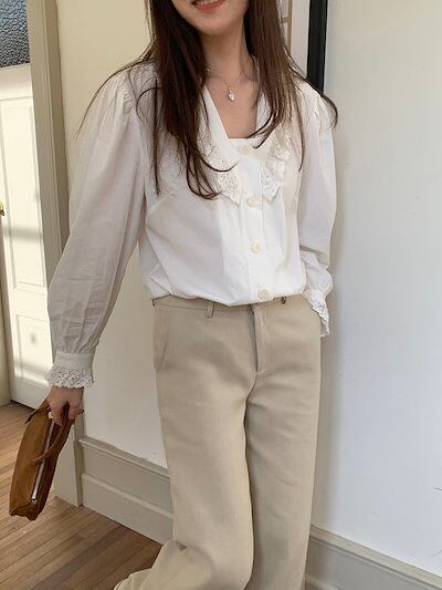 2024秋冬トップス シャツ 長袖 レース スクエアネック ゆったり 秋 白 ホワイト おしゃれ かわいい 韓国ファッション レディース お出かけ