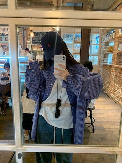 2024秋冬トップス シャツ 長袖 チェック柄 ボタン 襟 スタンダードカラー 秋 青 ブルー おしゃれ かわいい きれいめ 大人っぽい 韓国ファッション レディース お出かけ