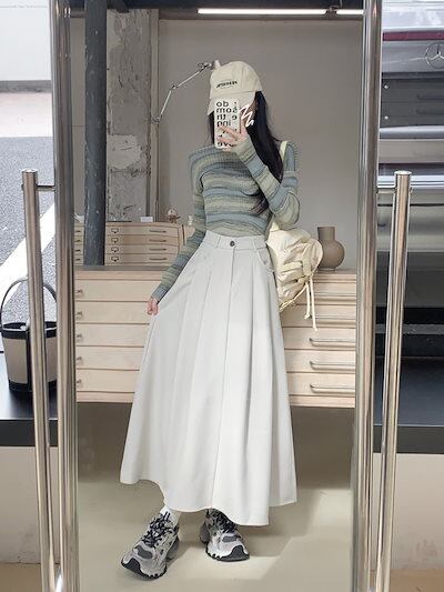 2024秋冬スカート ロング丈 Aライン ハイウエスト 美脚効果 脚長効果 細見え 秋 白 黒 おしゃれ かわいい 韓国ファッション レディース お出かけ