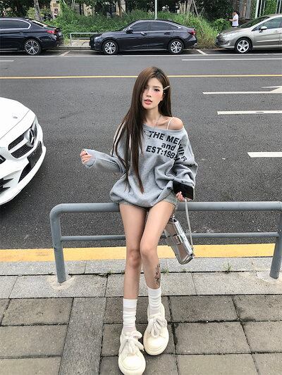 2024 秋冬 トップス 長袖 かわいいラウンドネック Tシャツ レディース 韓国風 96 ルーズ ゆったり 無地 カジュアル おしゃれサイズ シルエットファッション系シャツ衣装お出かけ