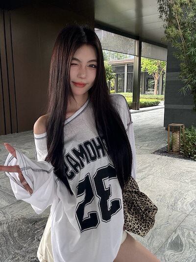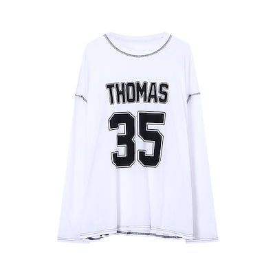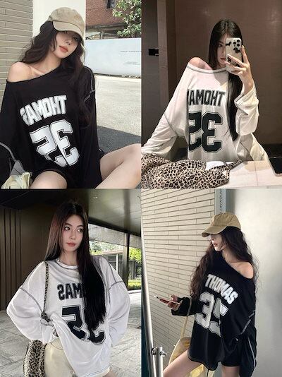 秋韓国可愛い風トップス Tシャツ ファッション系 長袖 プリント ルーズ サイド ペイントシルエットゆったり丈 レディースサイズ韓国Vネック おしゃれ カジュアル メンズライク T