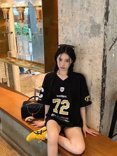 2024 夏 韓国可愛い風トップス Tシャツ ファッション 半袖 スリムフィット サイドペイントシルエットゆったり丈 休日レディースサイズ韓国Vネック おしゃれ カジュアル メンズライクフットシャツ