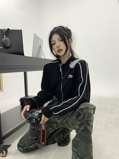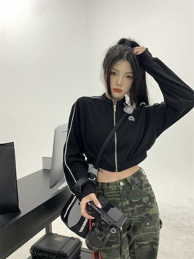 2024 秋 韓国 かわいい レディース アウター ブルゾン お出かけ ブラック ライトカーキ アウター長袖セクシートップスサイド冬カジュアルファッション系お出かけフル丈トラック