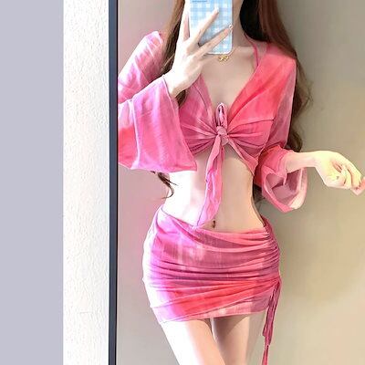 2024 水着 4点セット ビキニ 韓国ビキニ 長袖 ハイウエスト スイムウェア 美脚 脚長 スタイルアップ 大人女子 韓国系ファッション レディース 夏 海