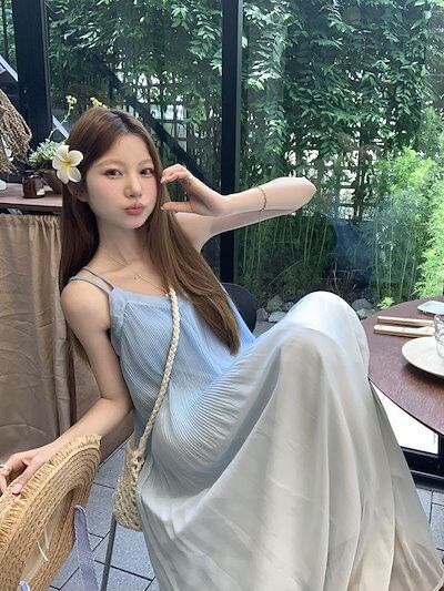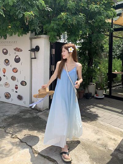 2024春夏グラデーション キャミワンピース ノースリーブ ワンピース ロングワンピース ルーズ 体型カバー レトロ 韓国ファッション