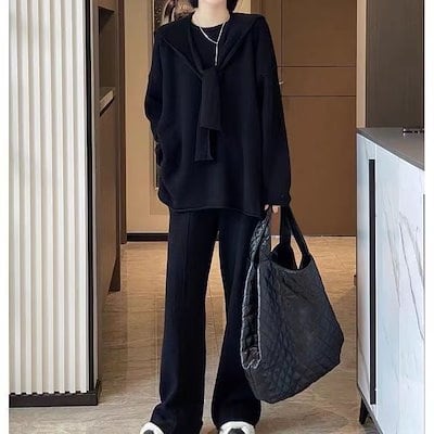 2024新作 ドレス ニットレトロスーツ カジュアル セットアップ 韓国風 ニット セットアップ レディース人気なリプニット