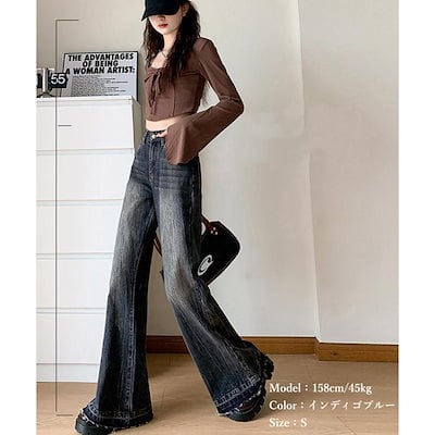 スキニーデニムパンツ レトロ フレアデニムパンツ ローエッジ