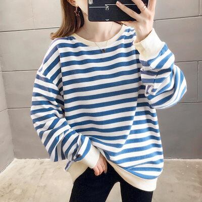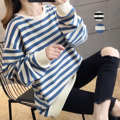 韓国 パーカー ボーダー柄 スウェット 配色 トレーナー