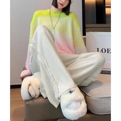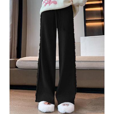 ワイドレッグトラウザー サイドフリンジ ワイドニットパンツ 韓国